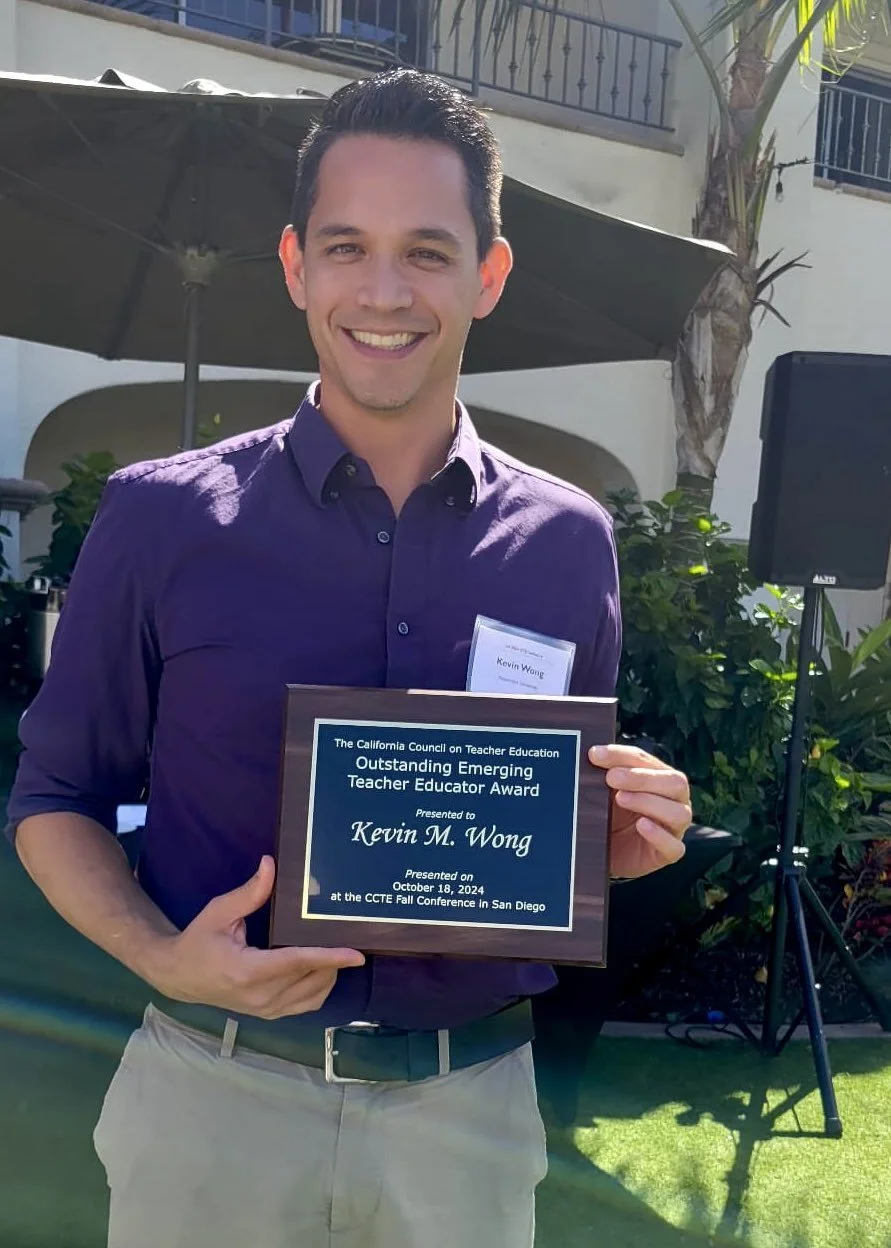 And so, with immense gratitude to the California Council on Teacher Education and the teacher candidates (now teachers!) who I've gotten to work with, I express my heartfelt thanks for this recognition and honor: the Outstanding Emerging Teacher Educator Award. It affirms and validates that while I'm no longer in the elementary classroom, my work in teacher education—through research, teaching, and service—is making a meaningful impact in the lives of students and teachers.